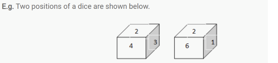 If in 2 different positions of the dice, the positions (different), the position of the face that’s common is the same, and then the opposite faces of the faces that remain will be in the same positions.