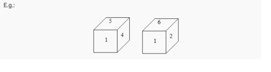 If two dice are as shown below, and one of the two common faces (Face number 4) is in the same position, then the remaining faces will be opposite to each other.