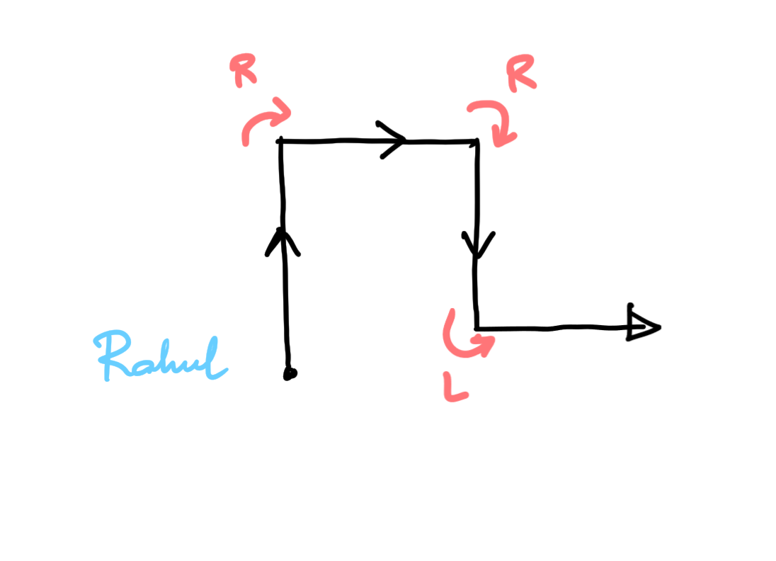 1. Rahul travels in the north direction, then turns right, then again turns right and thereafter turns left. In which direction is Rahul travelling now?