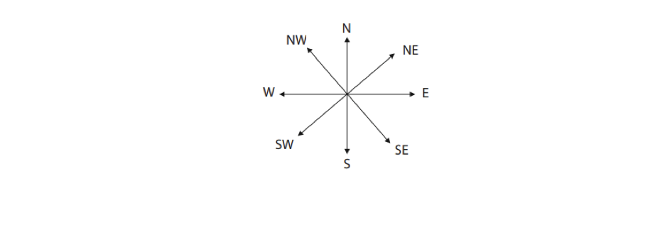 The following figure indicates the positions of various directions and will help the candidate to develop a direction sense.