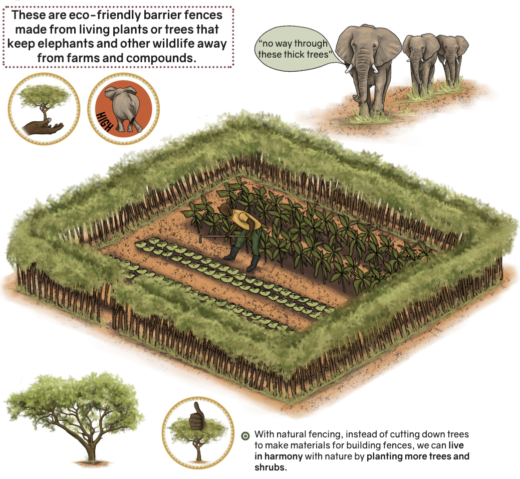 - Creation of physical barriers to prevent animals from reaching the human habitations and crop fields.