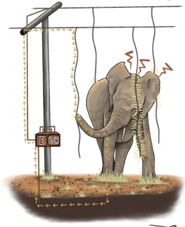 - Solar power is passed through the wires and when an elephant touches the wires, it gets mild shocks that do not pose any danger to its life.