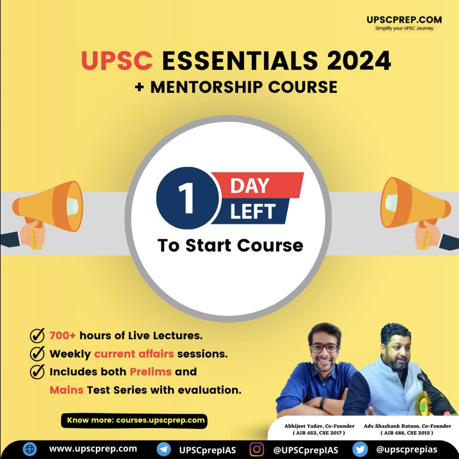 UPSC Essential+Mentorship Course for 2024 will start on 15th June 2023. UPSC ESSENTIAL is an Intensive Course for UPSC 2024.