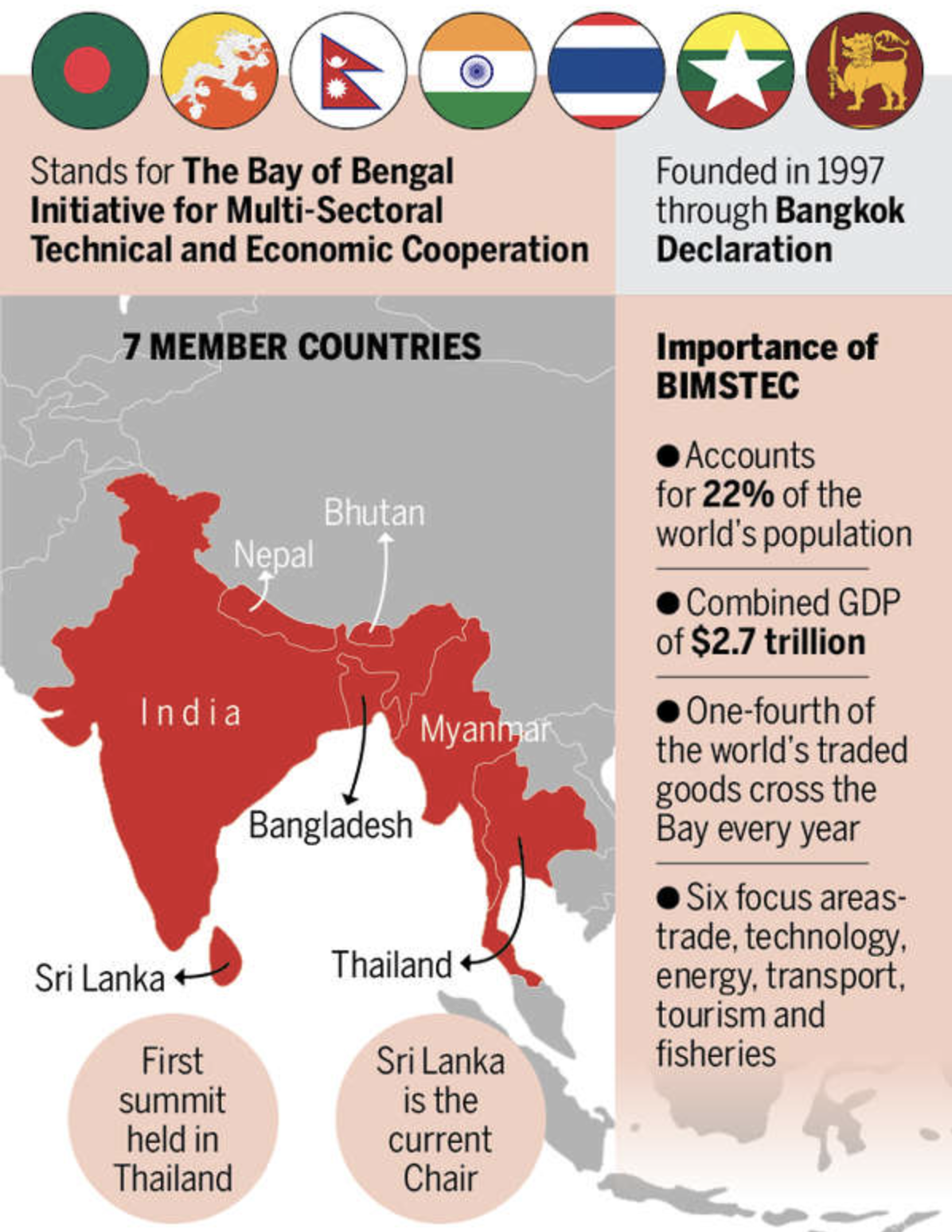 BIMSTEC (Bay of Bengal Initiative for Multi-Sectoral Technical and Economic Cooperation):