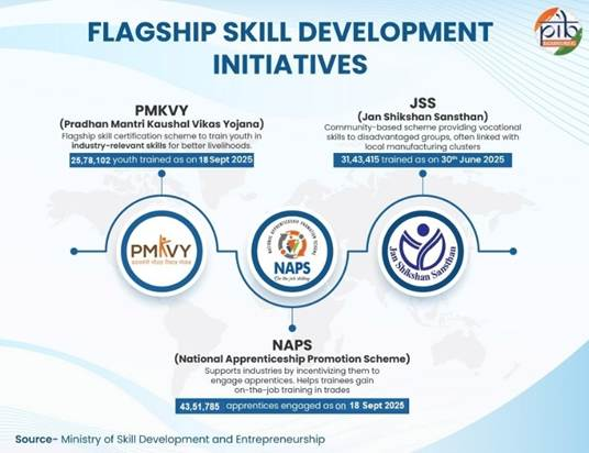 - 1.91 lakh startups, generating 17.7 lakh jobs (DPIIT, 2025).