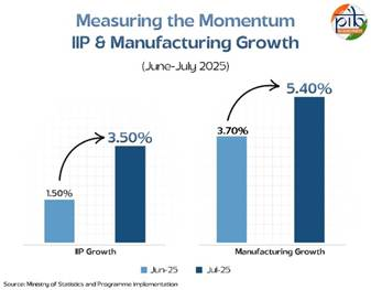 - Manufacturing anchors India’s growth engine with 16–17% GDP share and is projected to reach 25% by 2035.