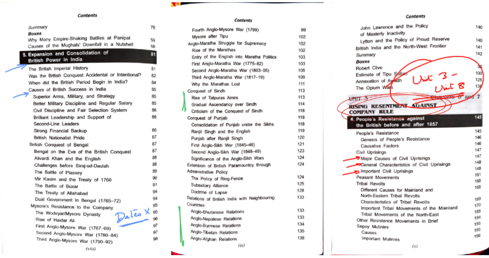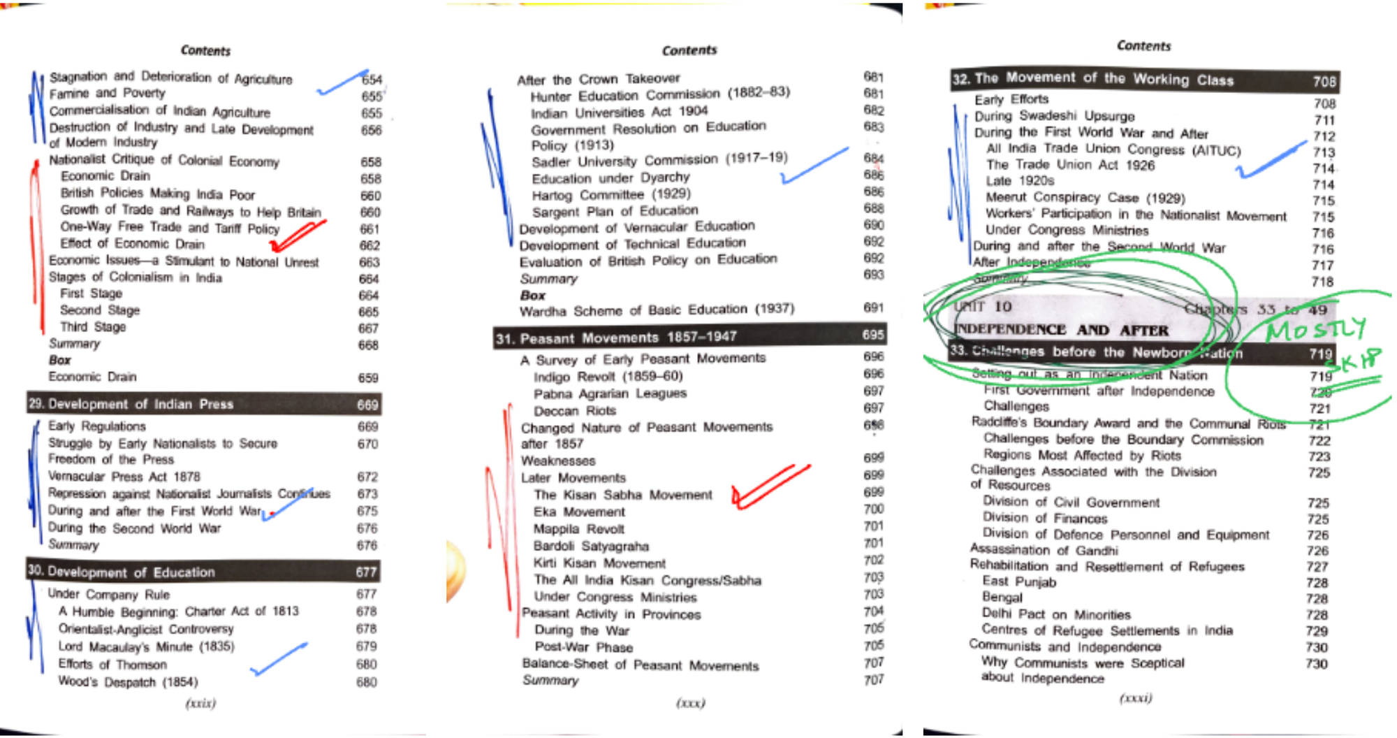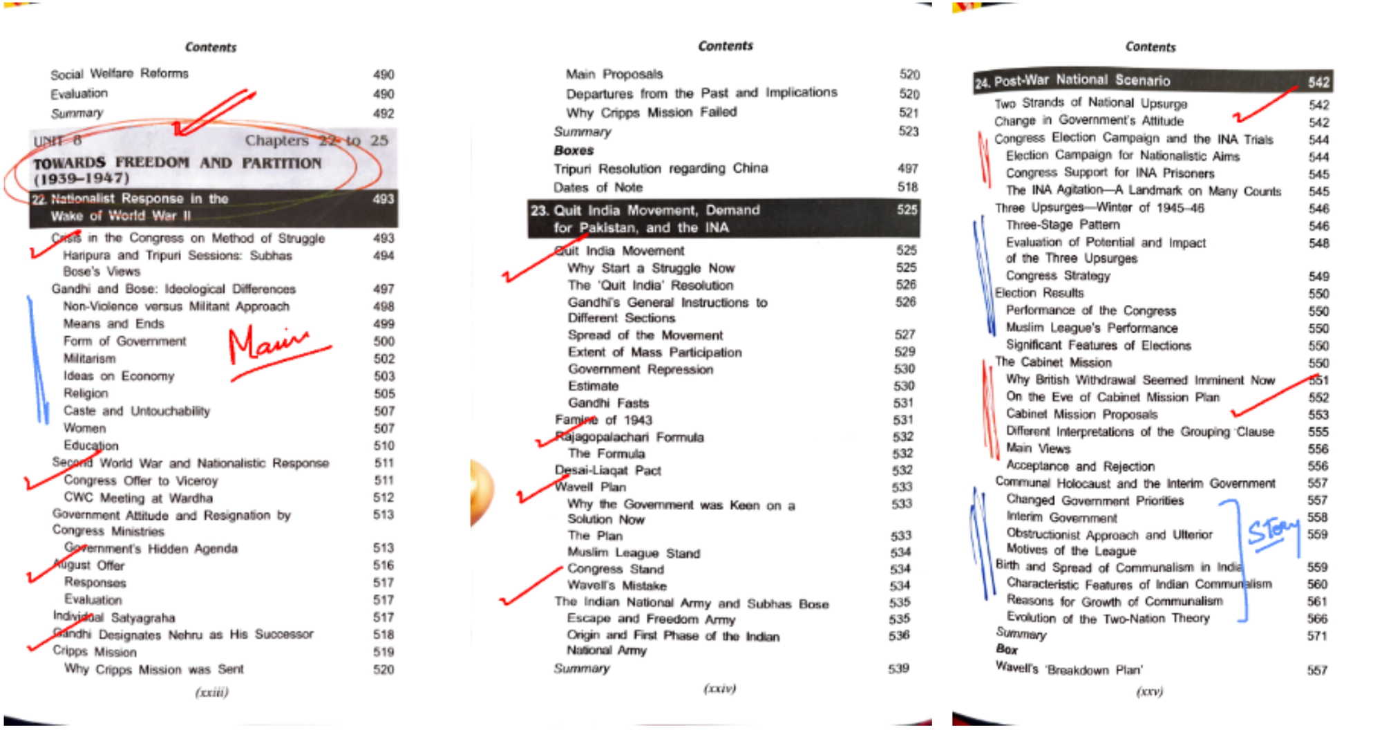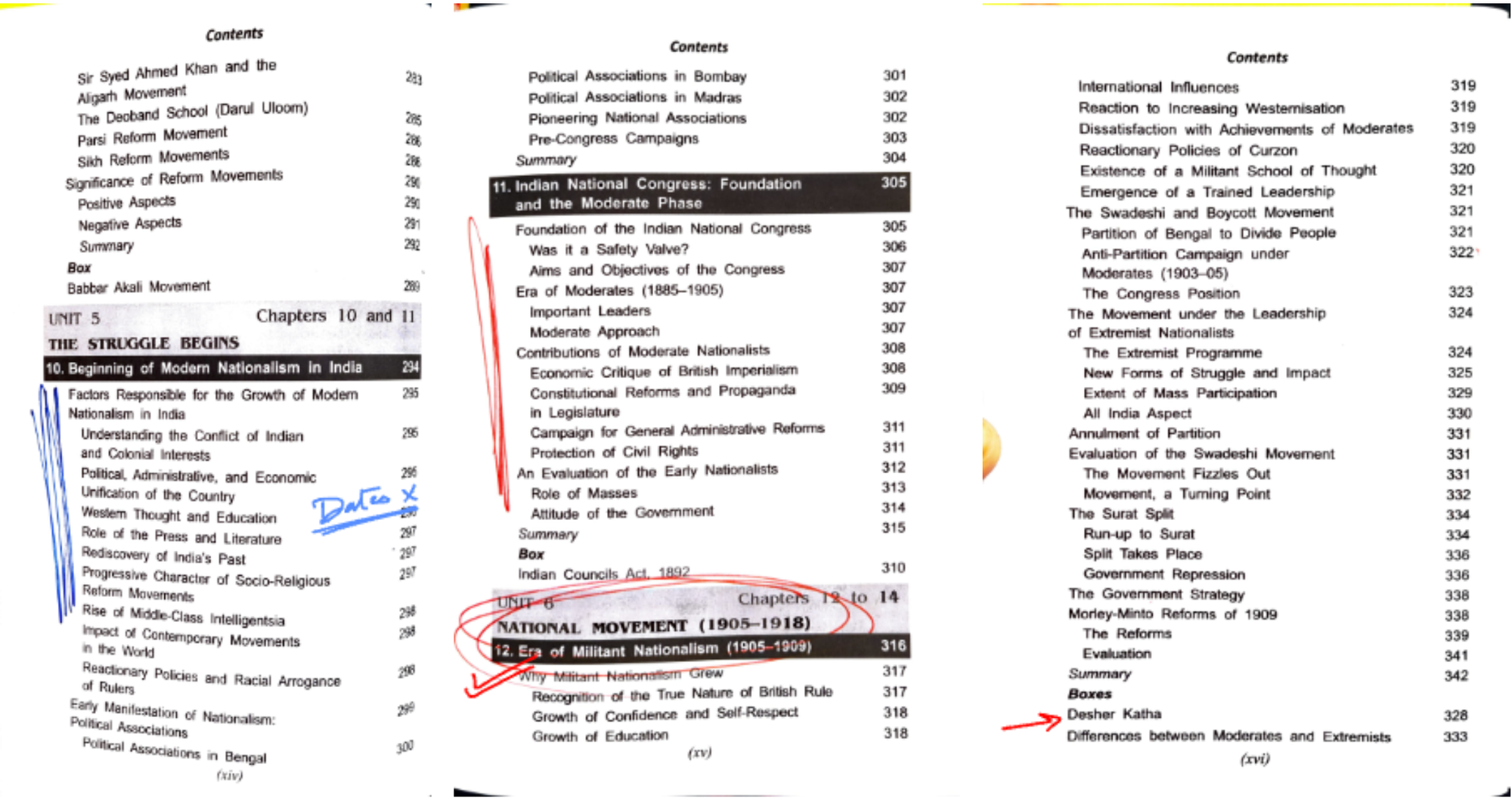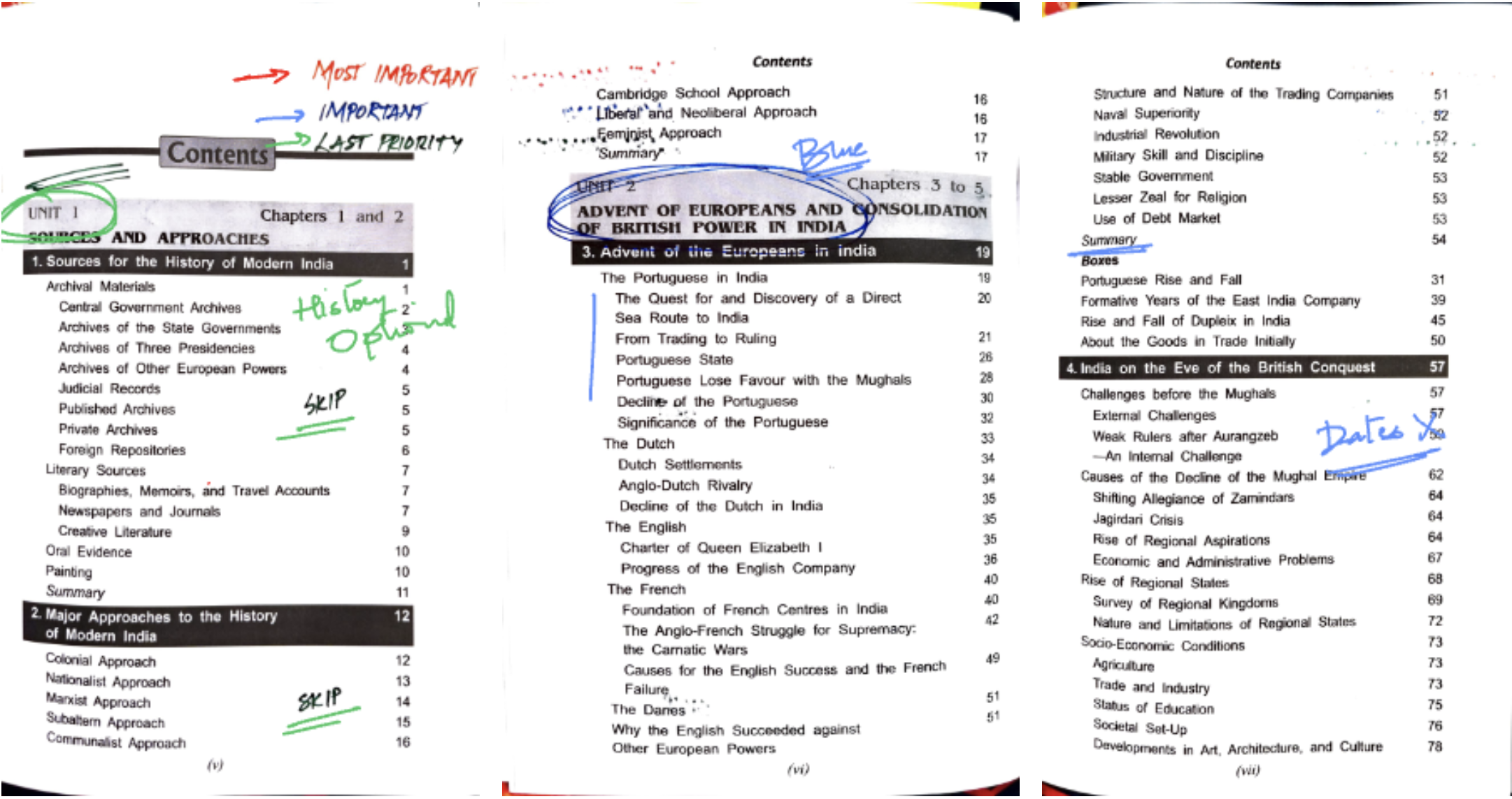 - Red Marked Chapters: These are your must-read chapters. They hold the essence of the periods and are frequently visited in exams.