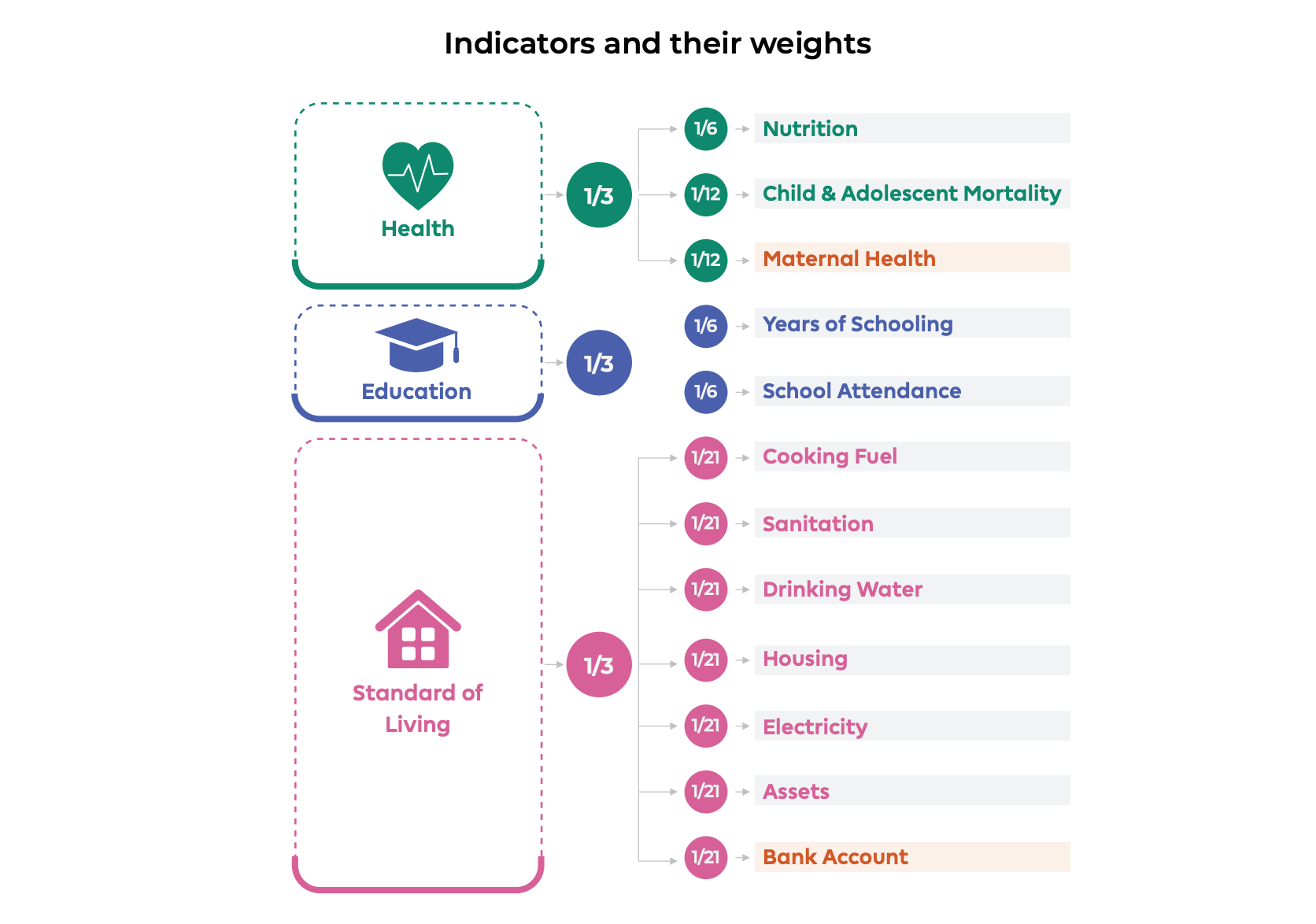 These three dimensions have one-third weight each in the final index.