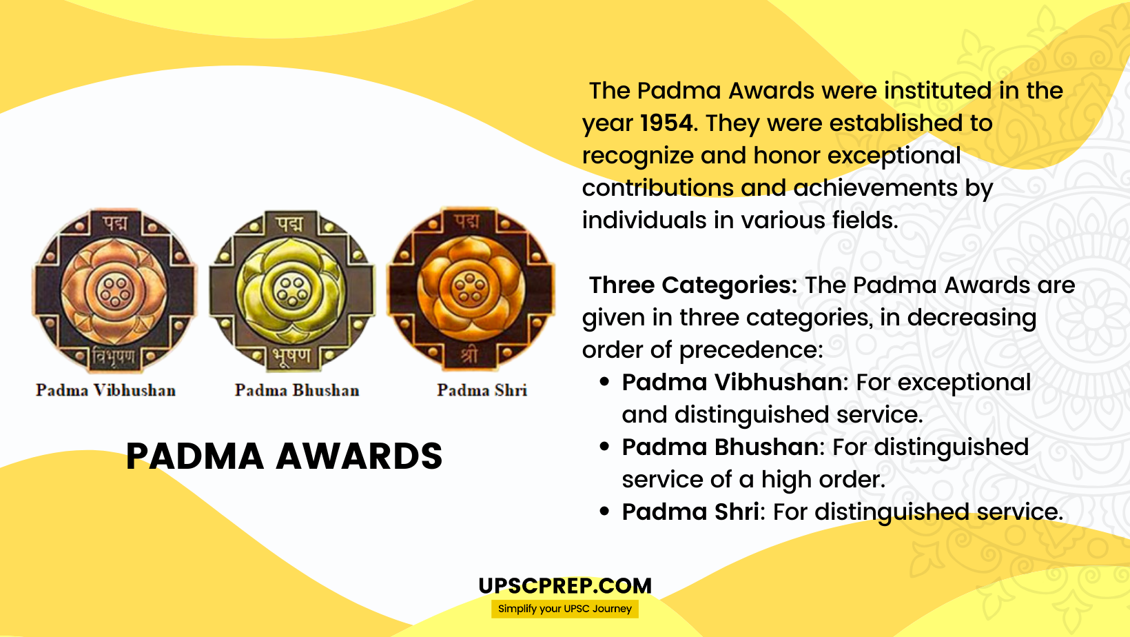 - A higher category of Padma award can be conferred on a person only where a period of at least five years has elapsed since the conferment of the earlier Padma award.