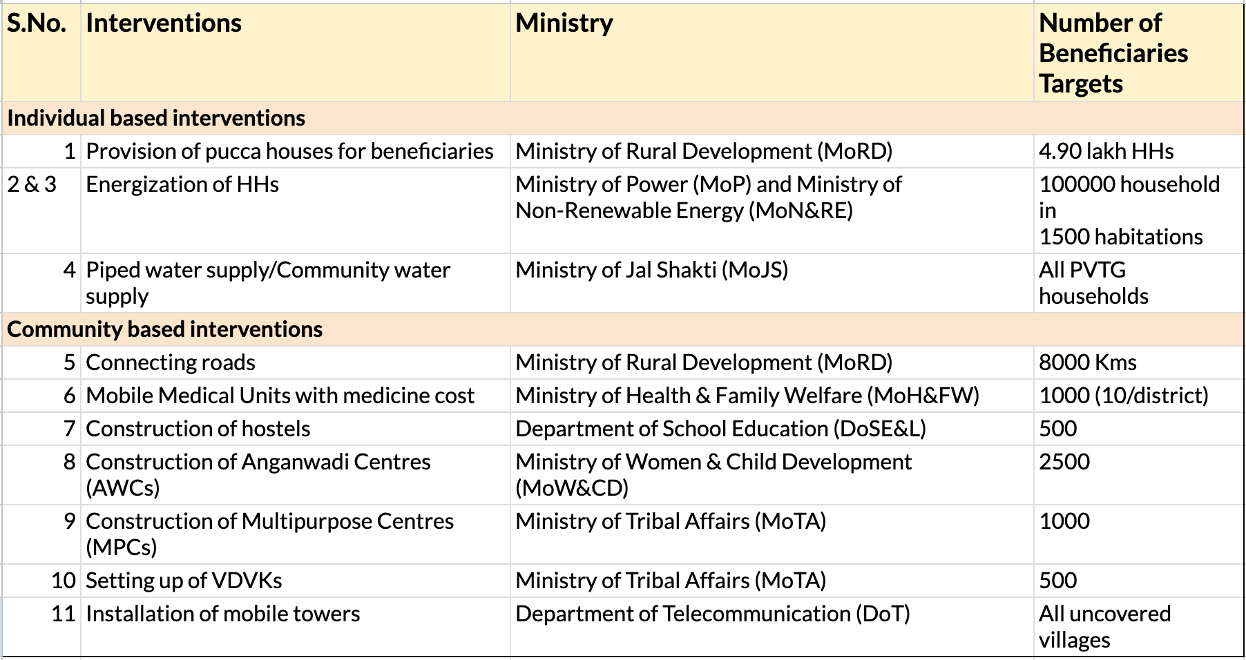 Other 10 interventions involving other schemes and Ministries/Departments have also been identified which are crucial for ensuring the holistic development of the PVTGs.