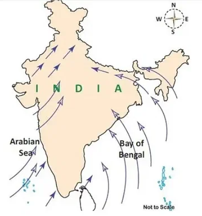 - As South West monsoon winds are divided into Arabian Sea and Bay of Bengal branch, the latter branch moves towards the Purvanchal Himalayas.