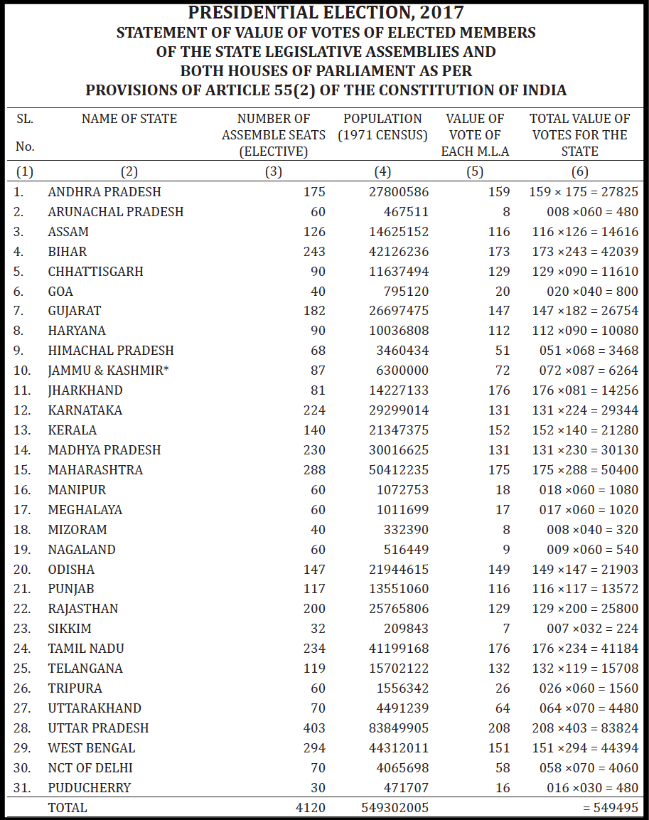 - Higher the number of elective Assembly seats, higher is the value of vote of each MLA of that State.