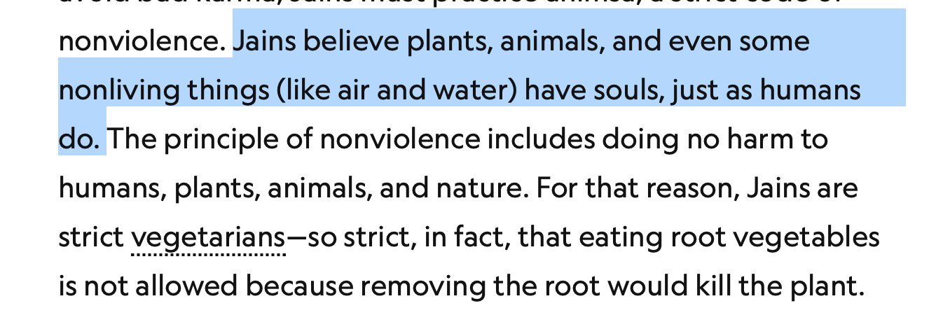 Q7. "Souls are not only the property of animal and plant life, but also of rocks, running water and many other natural objects not looked on as living by other religious sects."