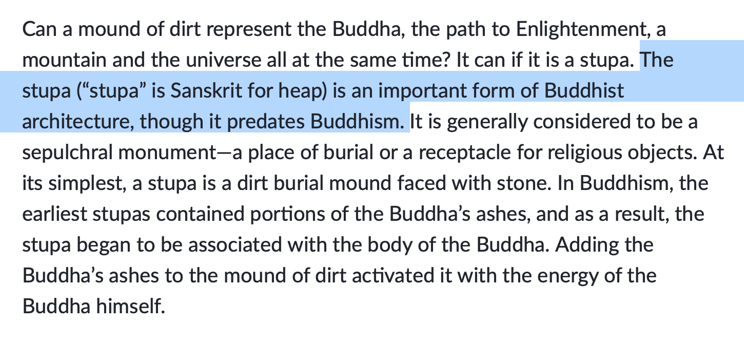 - The concept of Stupa is Buddhist in origin.