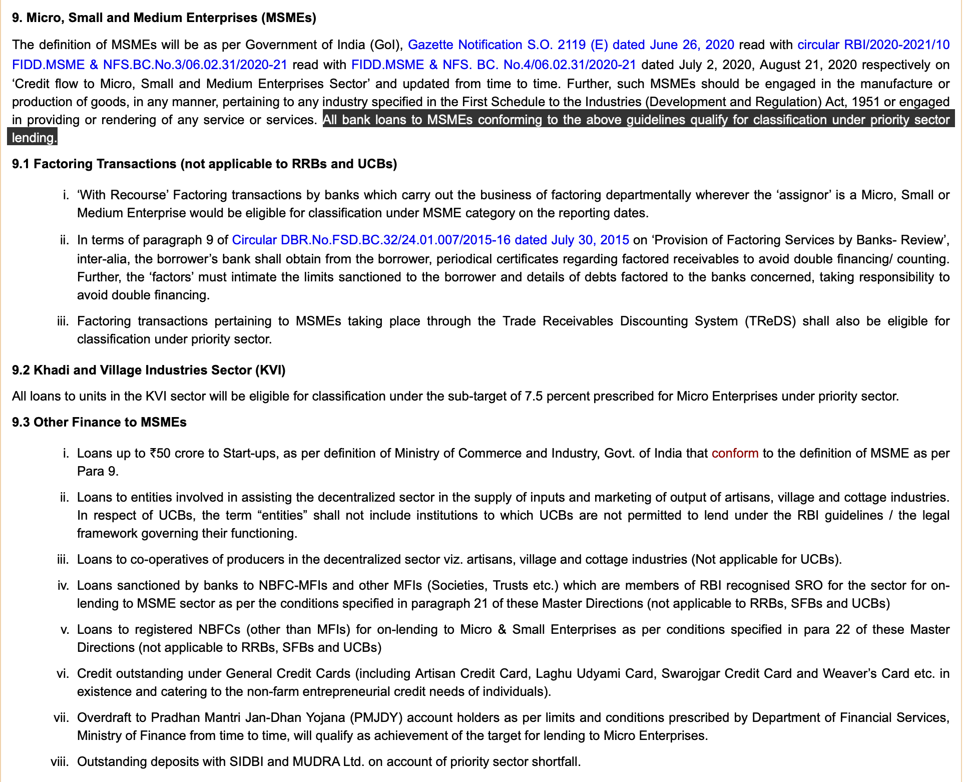 - All bank loans to the Micro, Small and Medium Enterprises qualify under the priority sector.