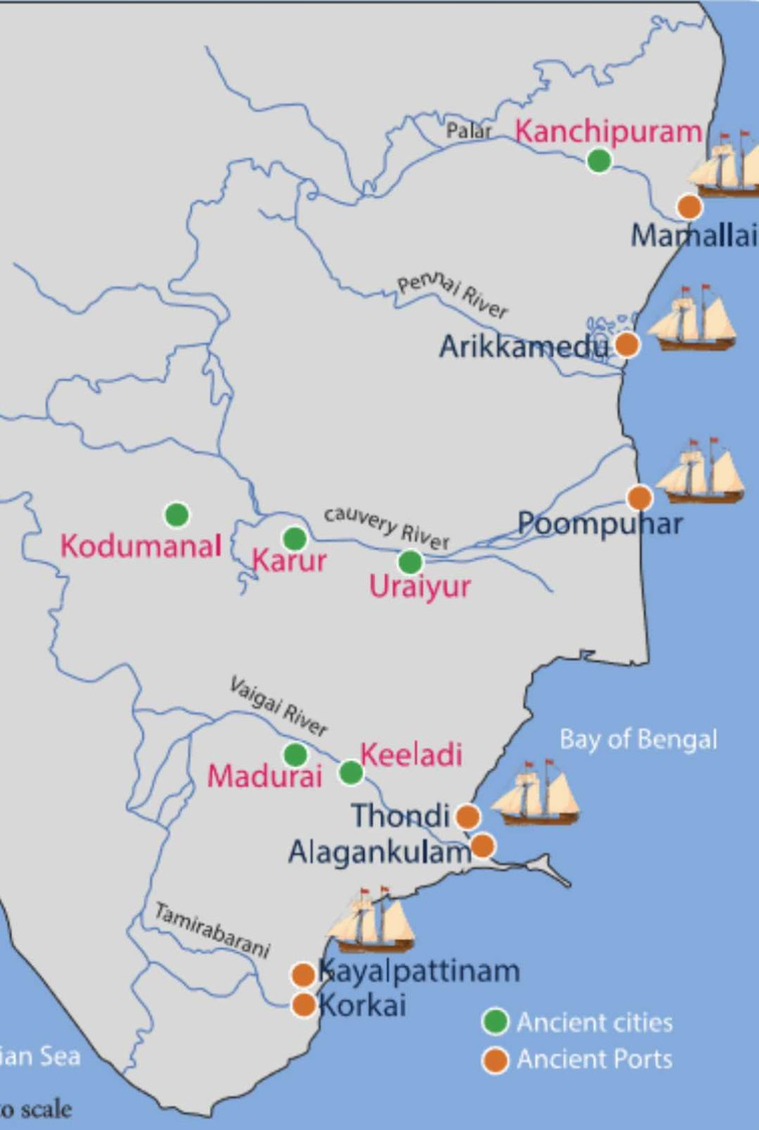 Q3. With reference to ancient South India, Korkai, Poompuhar and Muchiri were well known as