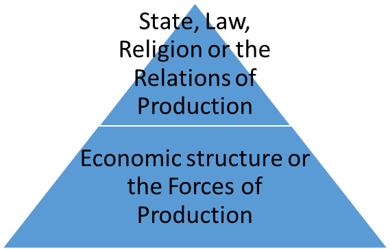 Marx in his writings alluded to the economic substructure and the superstructure of the state, made up of social, political and spiritual beliefs. He held that the superstructure was influenced by the base alone. That is, it was a one way influence.