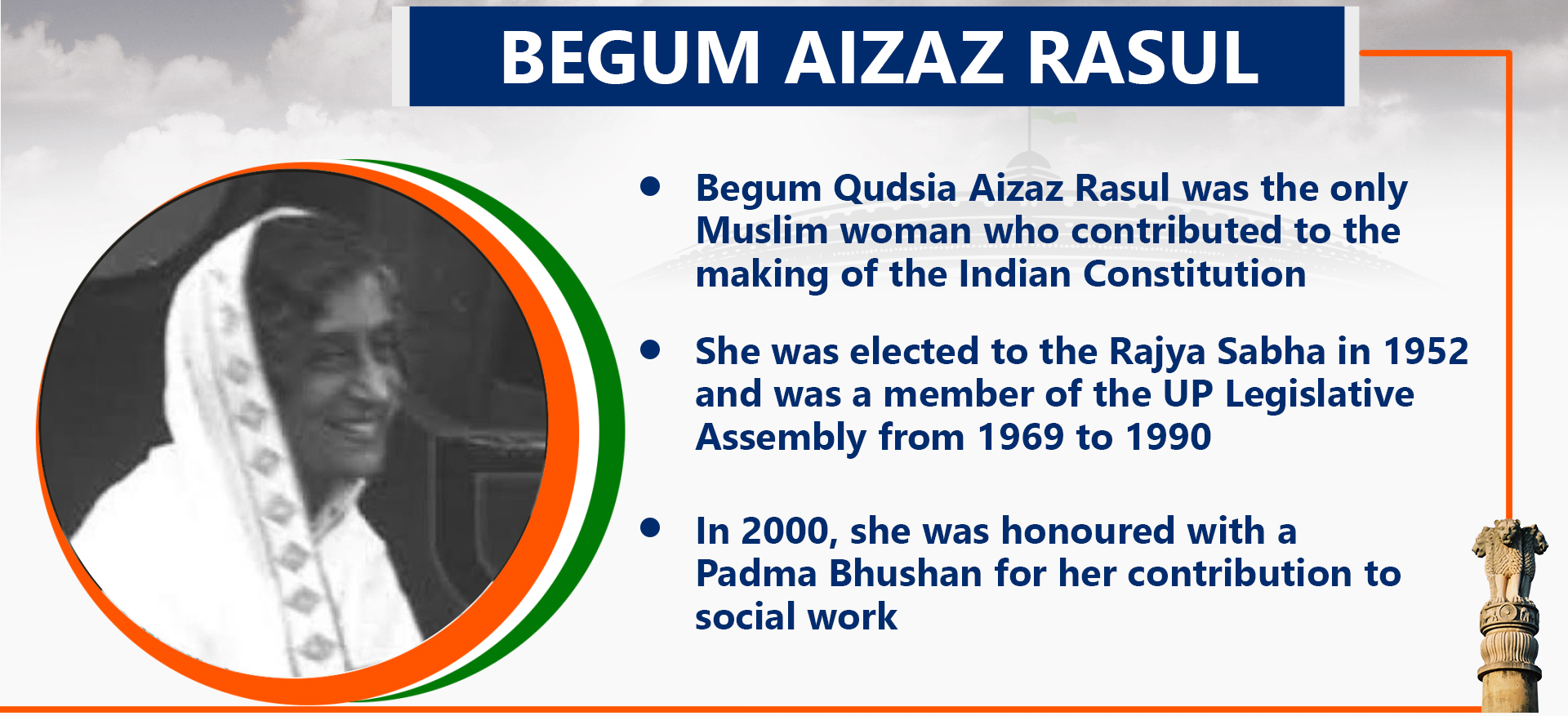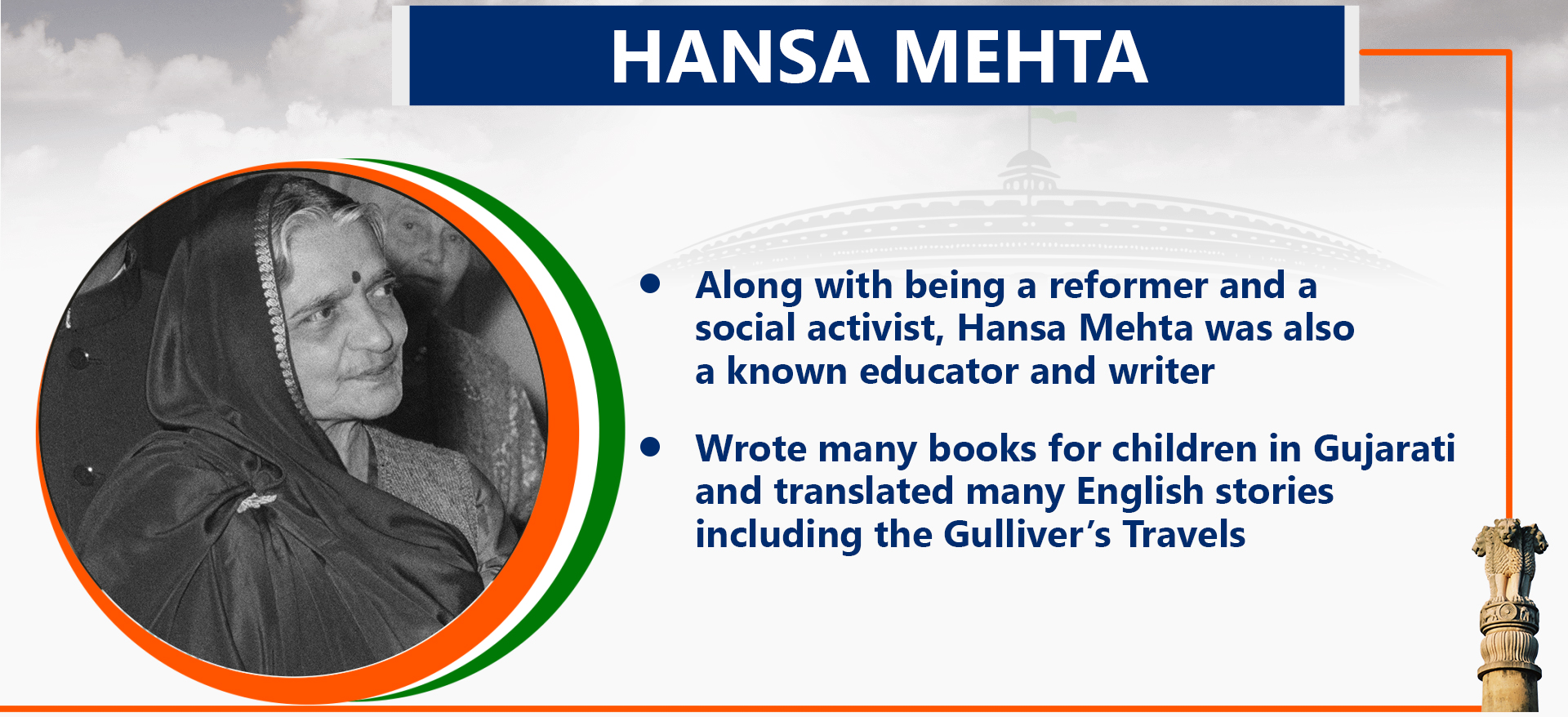 - As a Constituent Assembly member, she pushed for gender equality and social reforms.