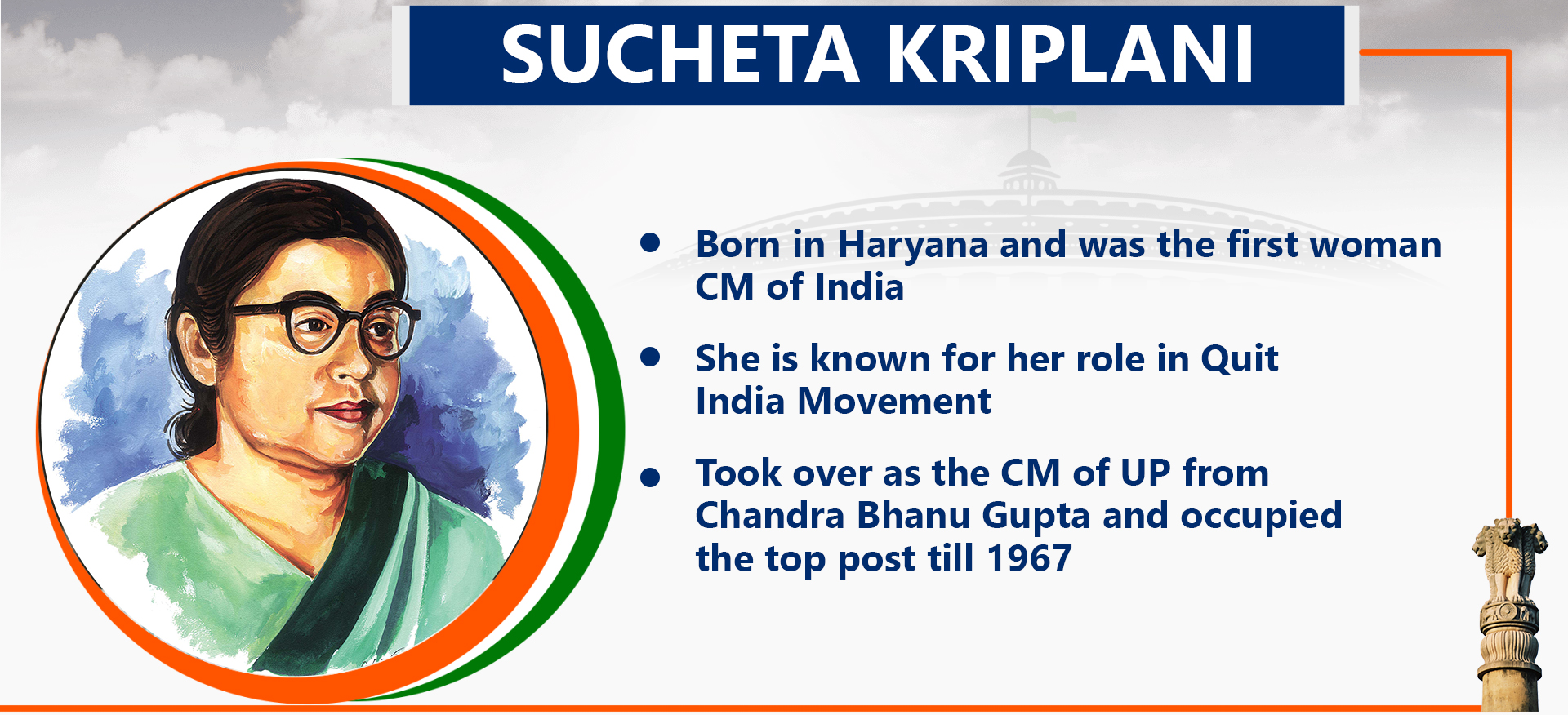- Born in Haryana, Sucheta Kriplani was a prominent figure in the Quit India Movement.
