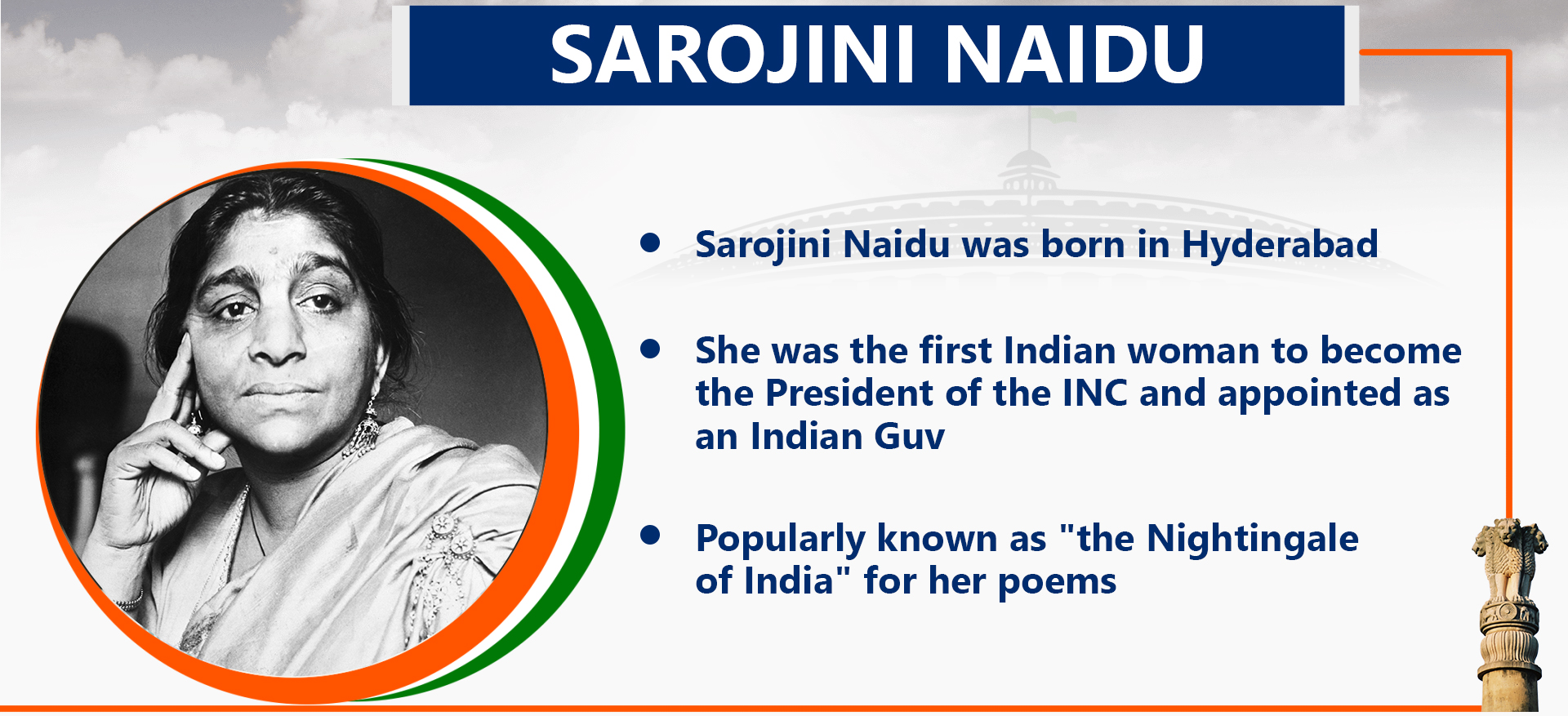 - Known as the "Nightingale of India", Sarojini Naidu was the first Indian woman to become the President of the Indian National Congress and later the Governor of Uttar Pradesh.