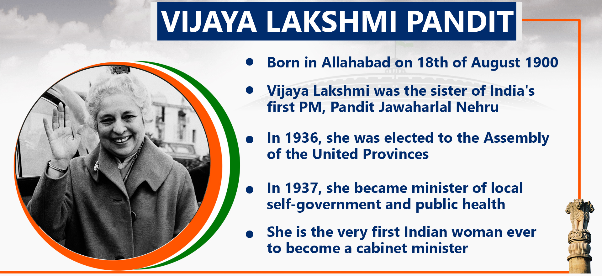 - The sister of Jawaharlal Nehru, Pandit was a pioneer in women's political representation.